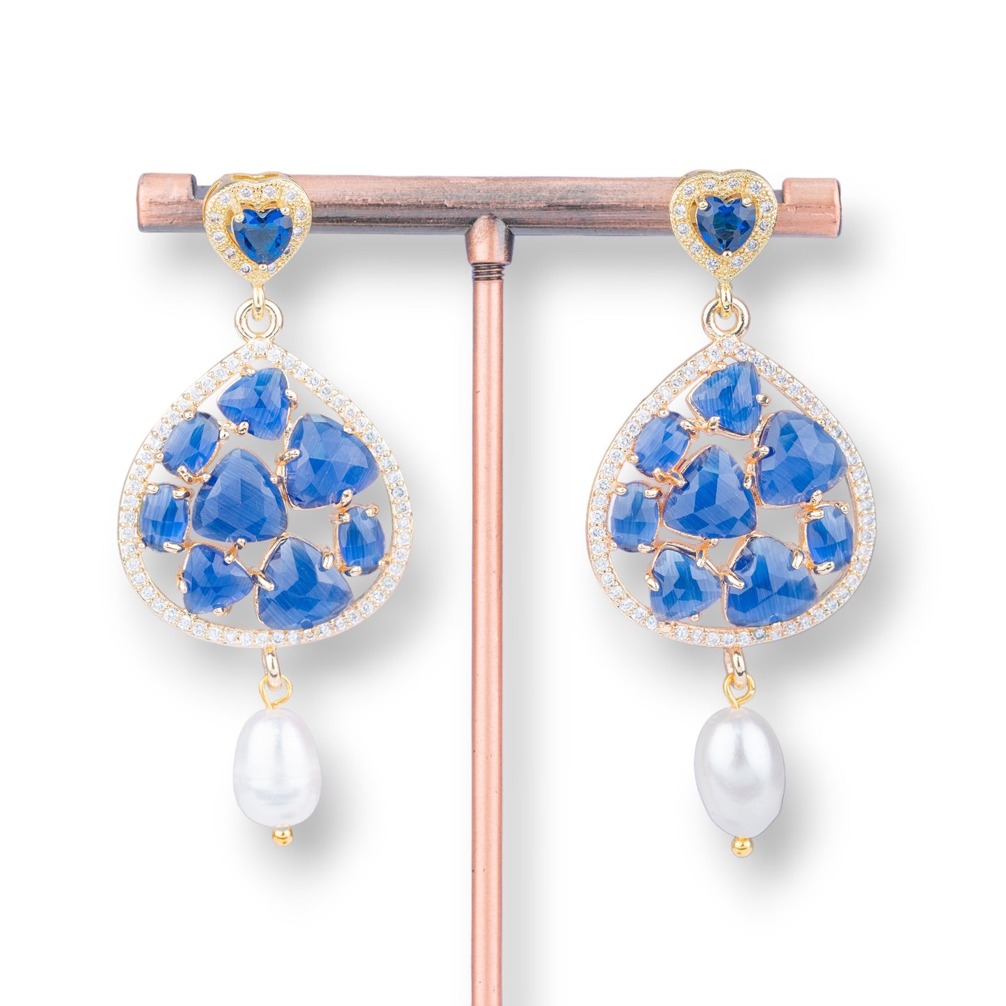 Scopri il fascino unico di questi orecchini dal design raffinato. La goccia di occhio di gatto e le perle di fiume blu aggiungono un tocco di classe e originalità al tuo look.