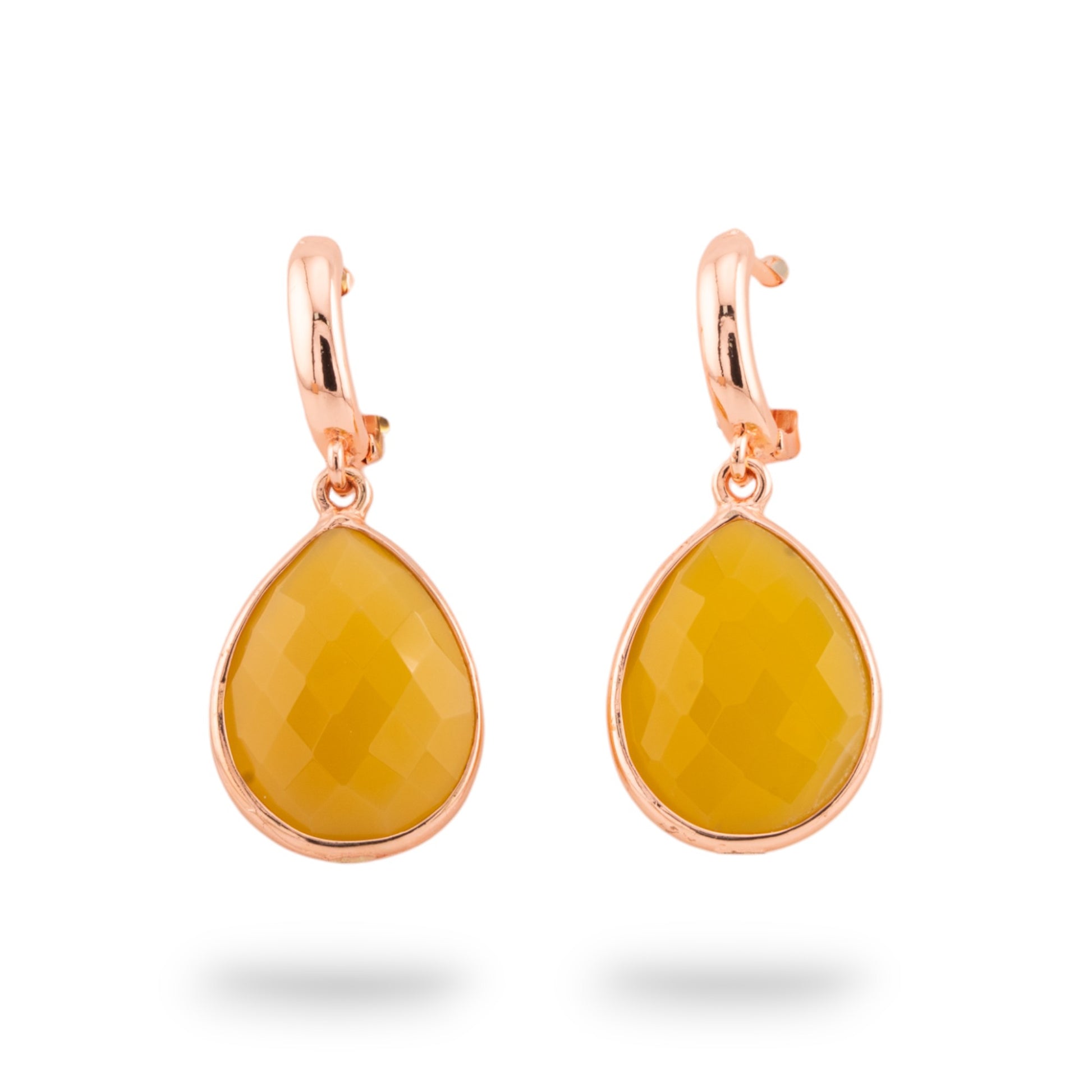 Eleganti Orecchini in Bronzo con Pietre Dure - Gocce in Oro Rosa e Agata Gialla