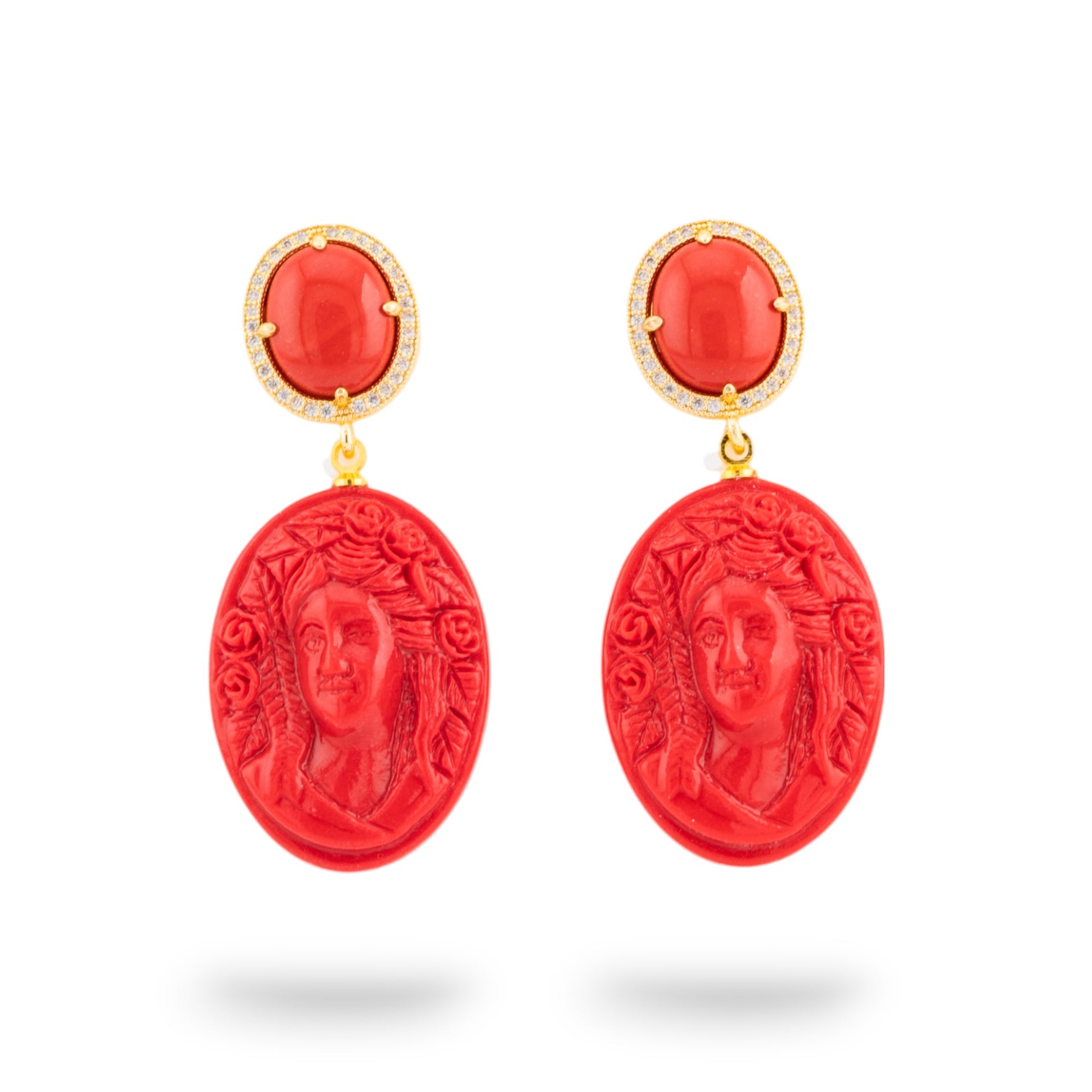 Orecchini Eleganza Naturale: Bronzo e Pietre Dure con Corallo e Cammeo